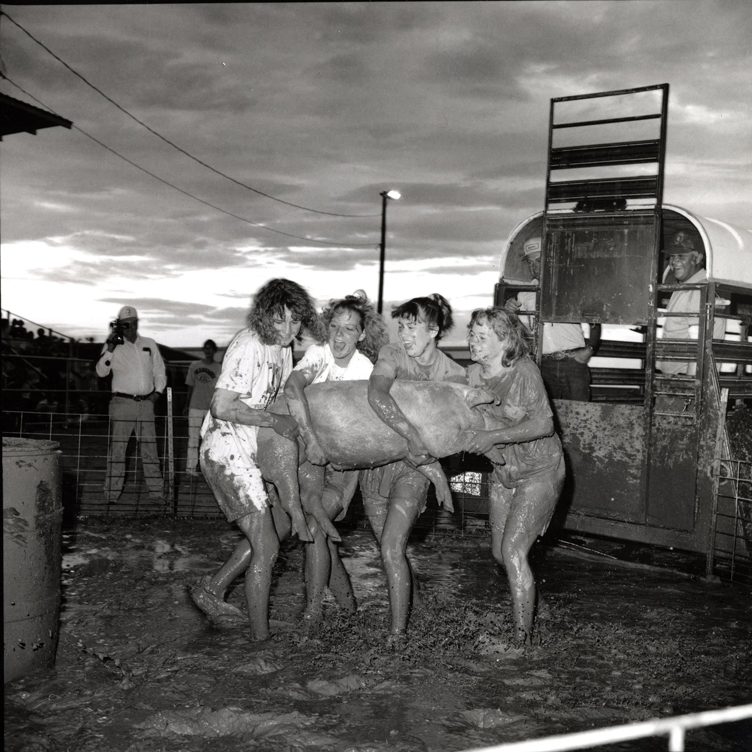 "Greta Pratt's extraordinary photographs capture with beautiful precision the people of rural America, by observing them with an artists' eye at the county fairs she visited across the middle part of our country. Every one of her images is arresting in its own way, whether of a child solemnly holding an American flag in Arkansas, or two farmers, black and white, sitting side by side in Mississippi, or twins posing in their party dresses in Tennessee, or four girls caked in mud wrestling with a pig in Wyoming. There is sometimes poignancy, sometimes joy, and always a glimpse of humanity that makes us stop and wonder."